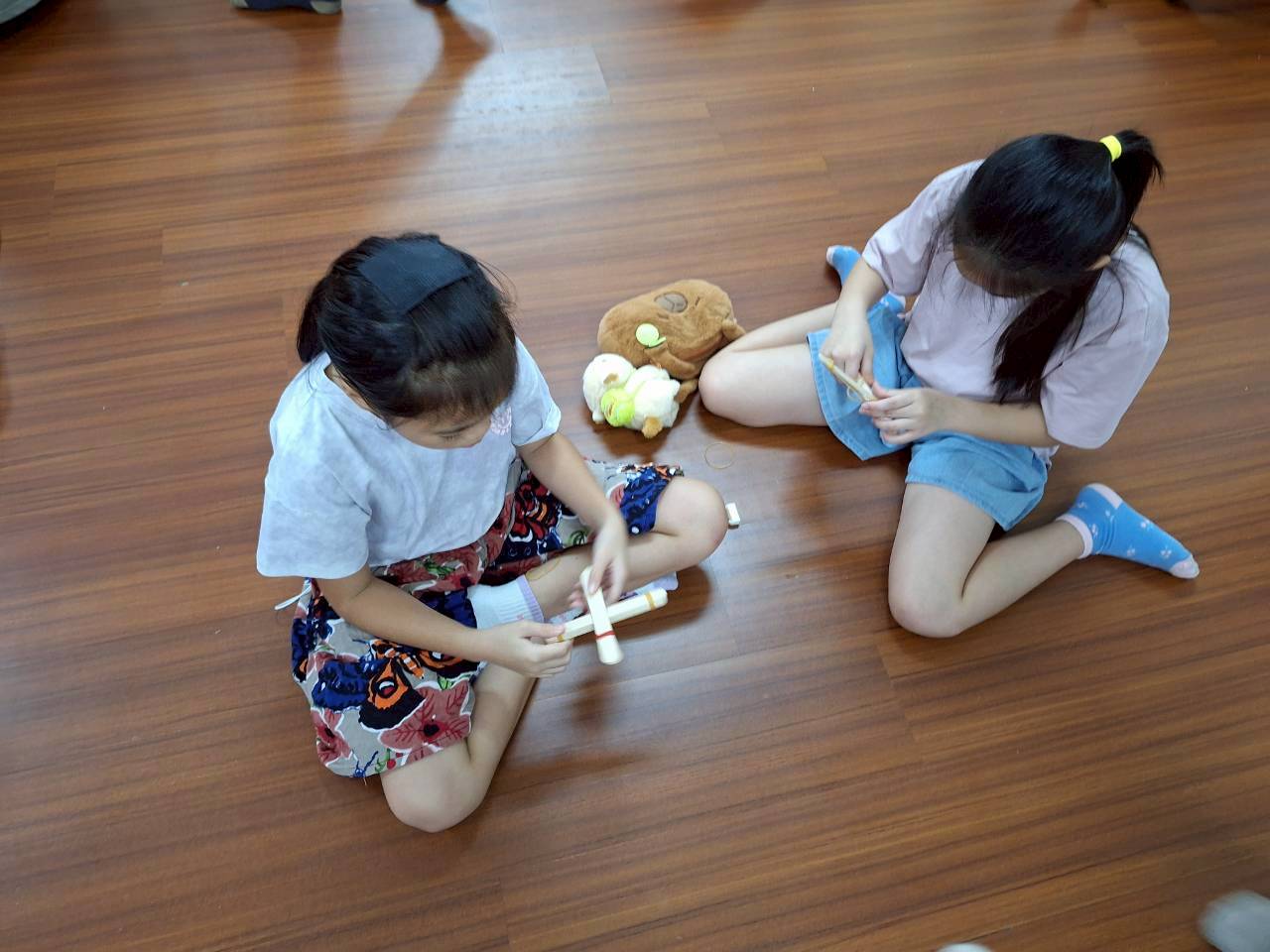 花蓮光復的在地師資多為受災戶,仍忙於整理、恢復家園,因此芥菜種會陪伴教育資源中心於災後前往光復,設計一系列課程陪伴孩子。這次由欣曄老師帶領,讓孩子們在遊戲中學習:只要善用生活中的素材,也能自己動手做出好玩的玩具。