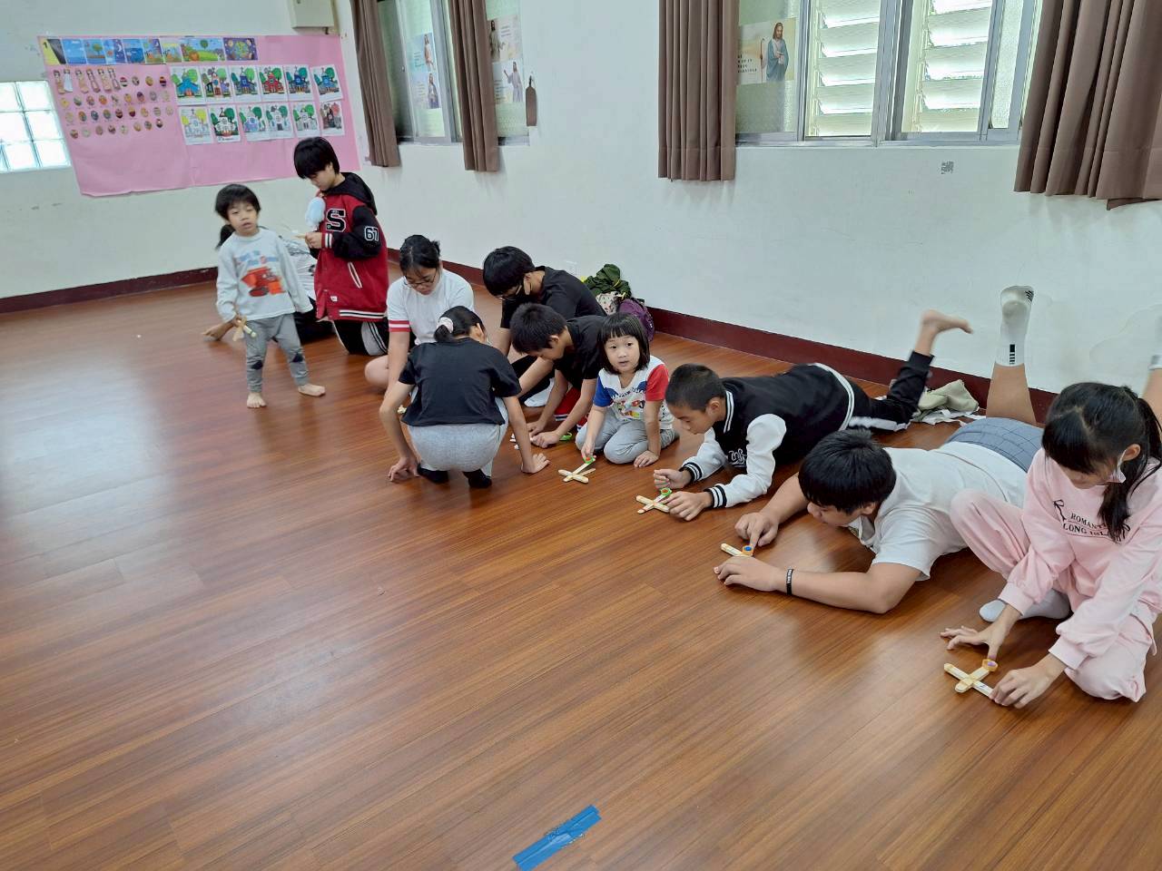 週日午後的馬太鞍長老教會裡,孩子們一個個屏氣凝神,專注地把手上的冰棒棍一支支綁起來。
