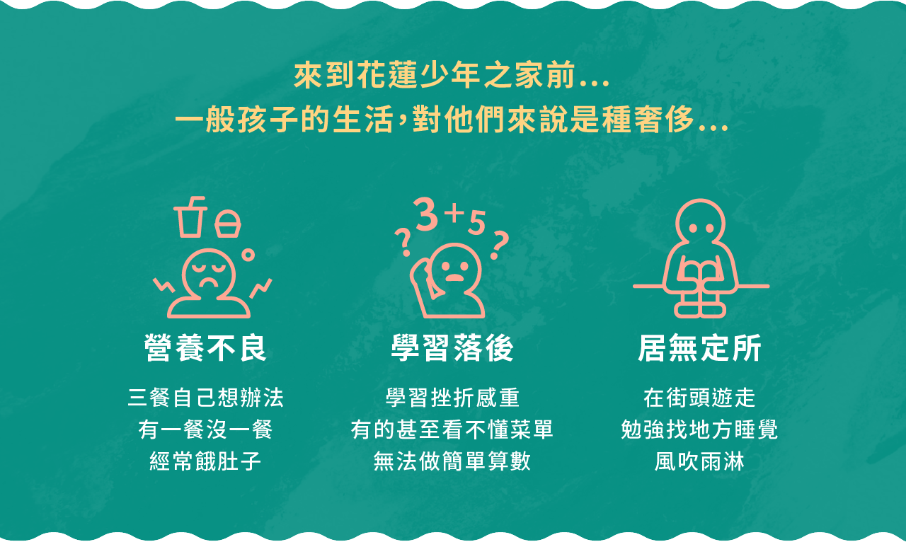 有一群孩子,他們本質善良,卻因為缺乏家庭的愛、被錯誤對待,產生行為偏差來到花蓮少年之家...