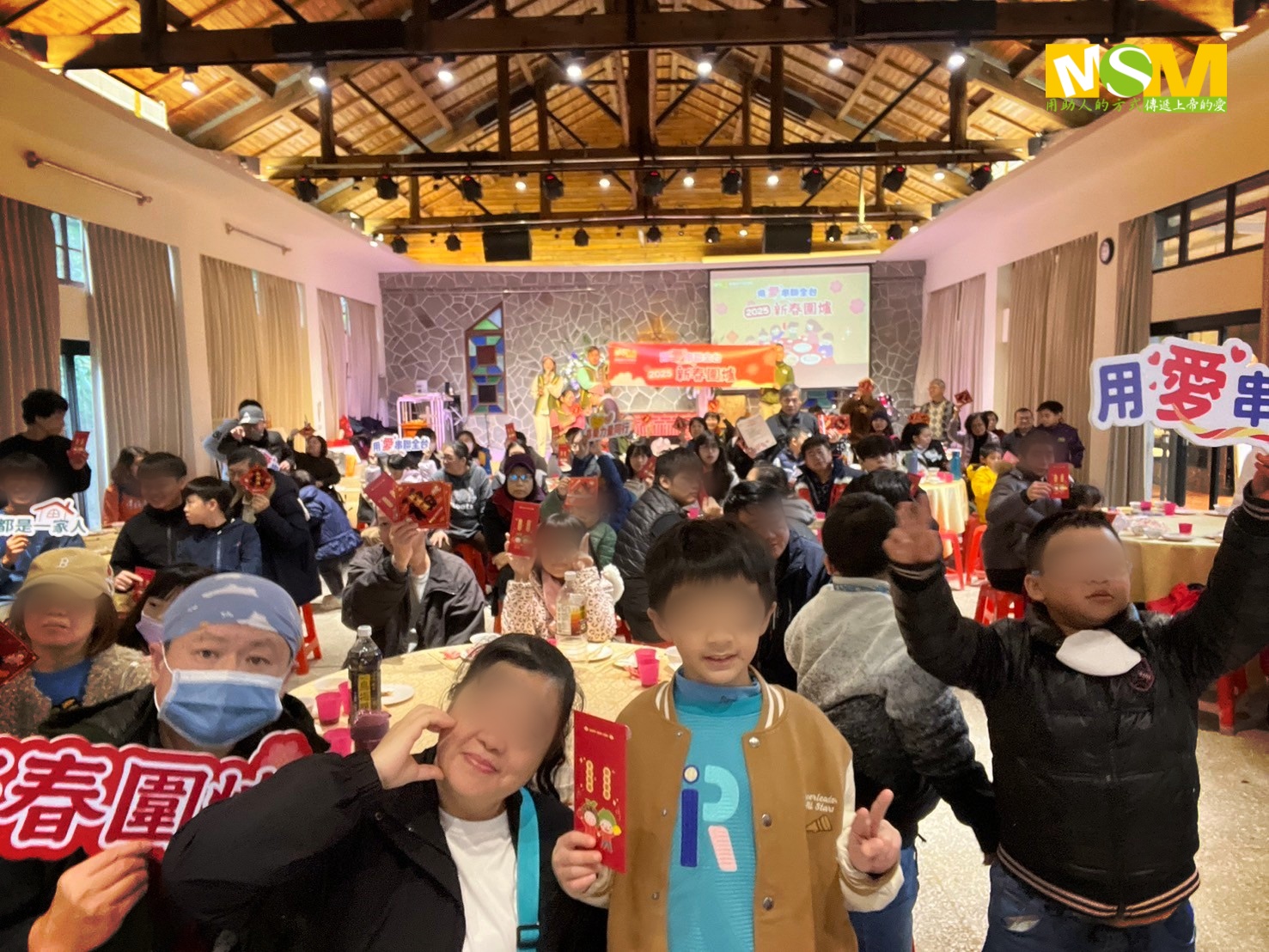 為此,芥菜種會特別於農曆春節前舉辦「新春感恩圍爐活動」,於北、中、南、東舉辦四區主場圍爐活動,邀請孩子及照顧者一同共進熱騰騰的年夜飯;另外還與社區助人網服務據點、教會串聯,在各縣市籌畫區域型活動,讓不便遠行的家庭也能共享團聚時刻。現場都有為孩子、照顧者送上象徵祝福和感謝的紅包,讓他們能吃飽飽,並共享年節「幸福」氛圍。
