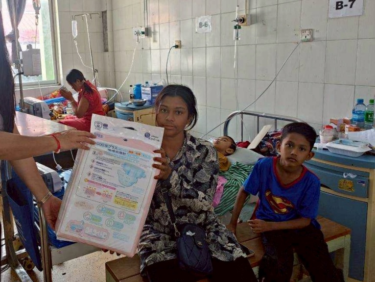 隨後向重建家庭送上白米、食用油、雞蛋等基本物資,陪伴並聆聽他們分享生活近況。有一戶98歲行動不便的奶奶,芥菜種會也持續透過包括成人尿布等長期物資支持關懷。