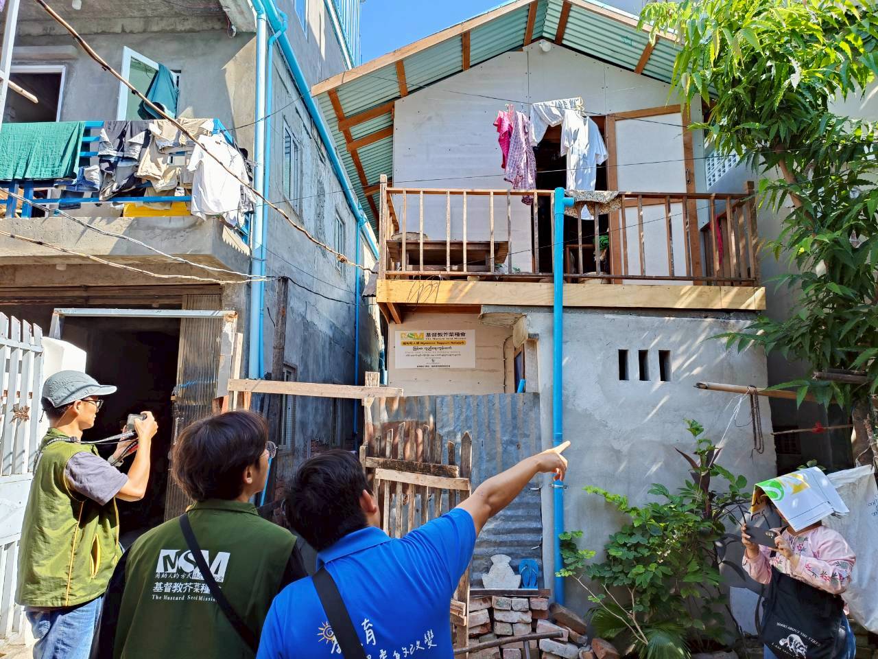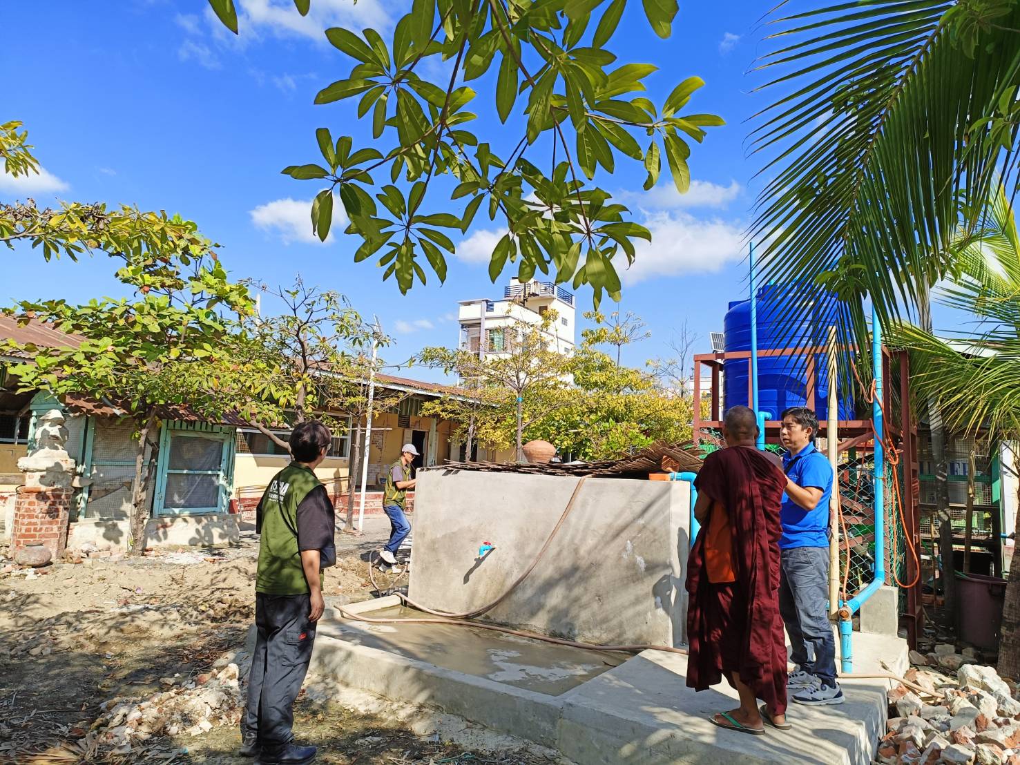 在第二供餐區,團隊再次檢視4戶重建屋的使用情況。其中一戶土地狹小的家庭,透過兩層樓的重建設計,終於能全家同住,重新找回安全與團聚的溫暖。團隊同時也實地查看兩處水井與蓄水設施的施工方式、水質狀況與抽水設備,確認能穩定供應災民的日常需要,包括井深是否足夠、水質是否穩定可使用、抽水設備、蓄水池、水塔等是否功能完善與維護妥當等。