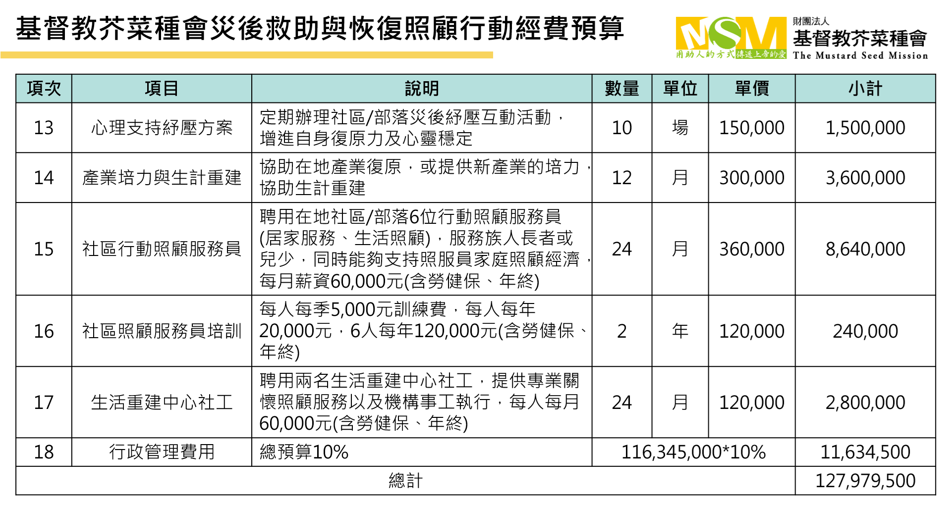 **光復洪災家園恢復及重建執行計畫,本會保留依實際社區案家需求調整之。