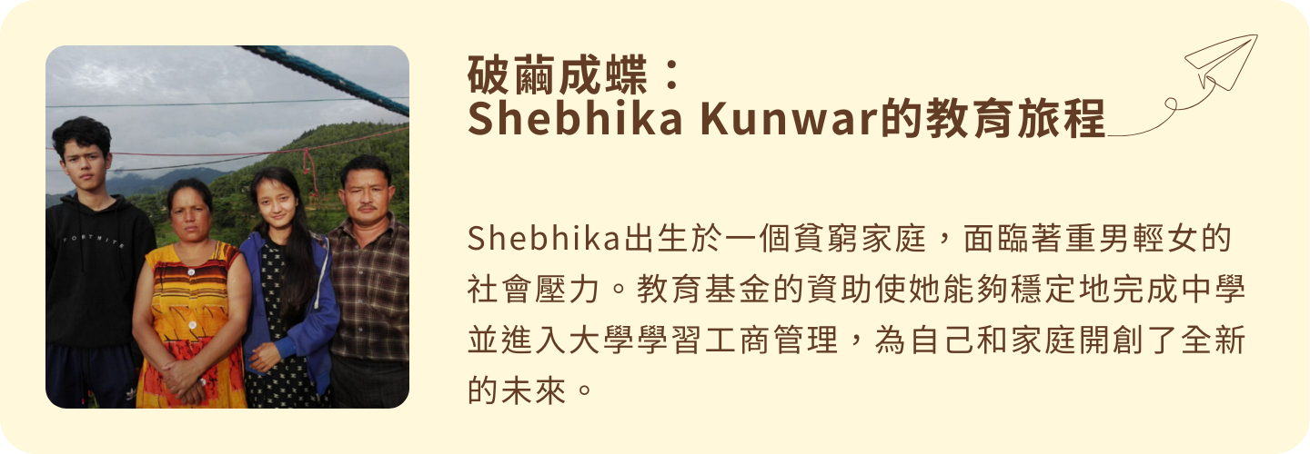 在尼泊爾,許多家庭因貧困無法負擔孩子的教育費用,導致兒童無法就學或早早輟學。