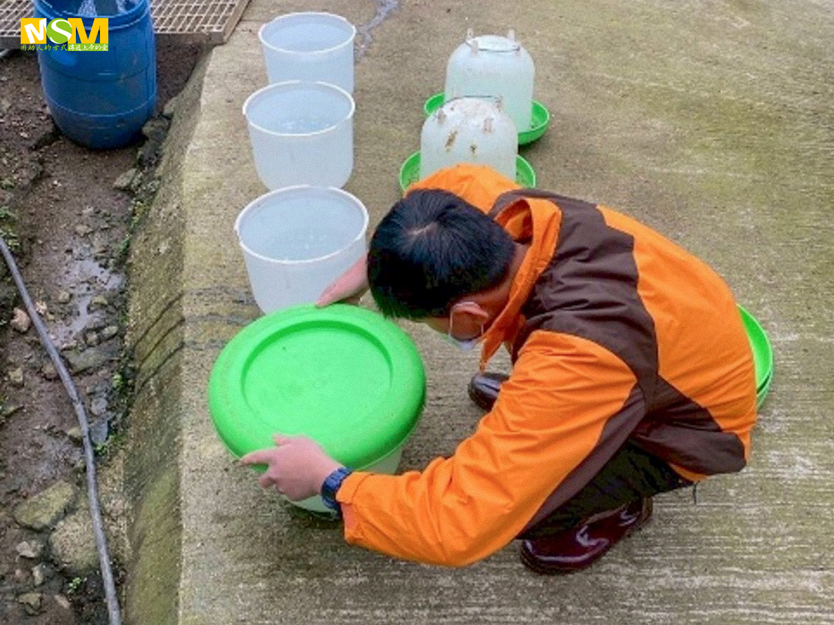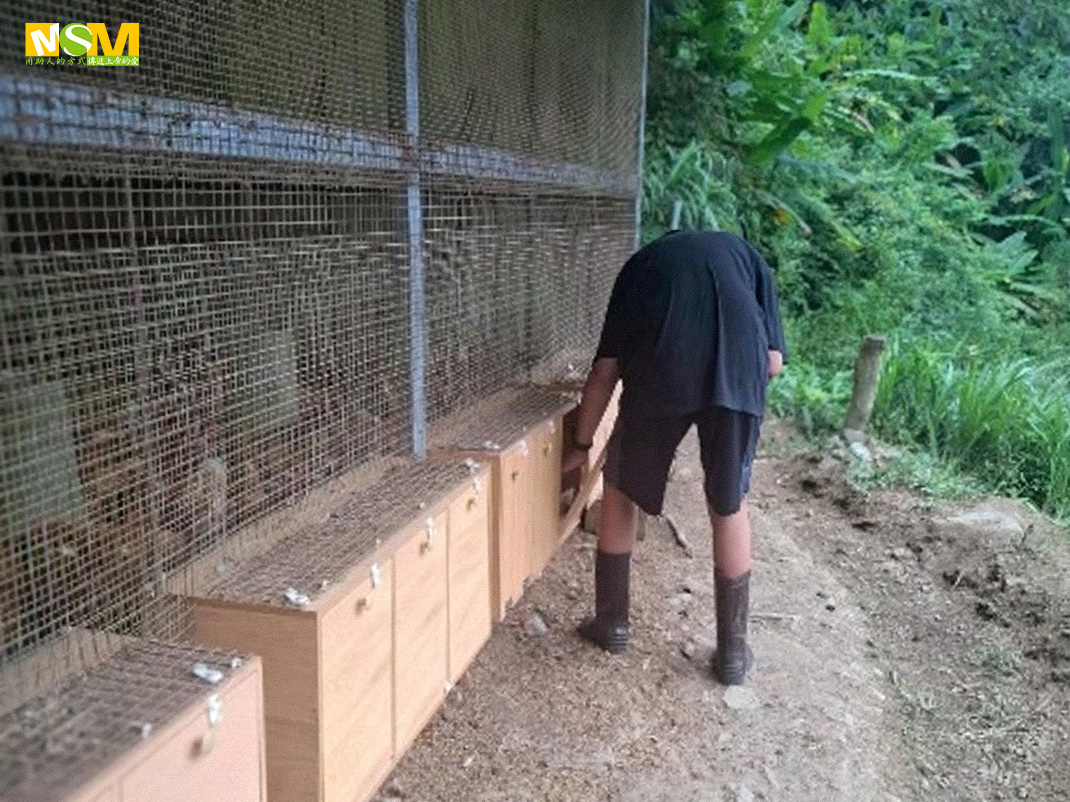 Left: Cai looking after chickens at Trinity Agri-Food Dream Base.