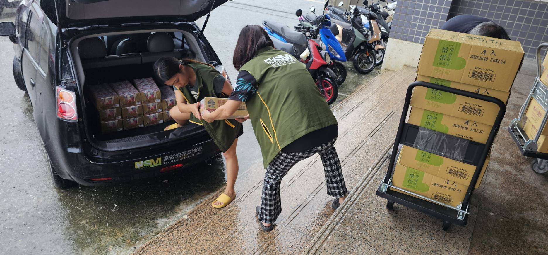芥菜種會生活物資供應中心台南倉調度物資進入花蓮災區。