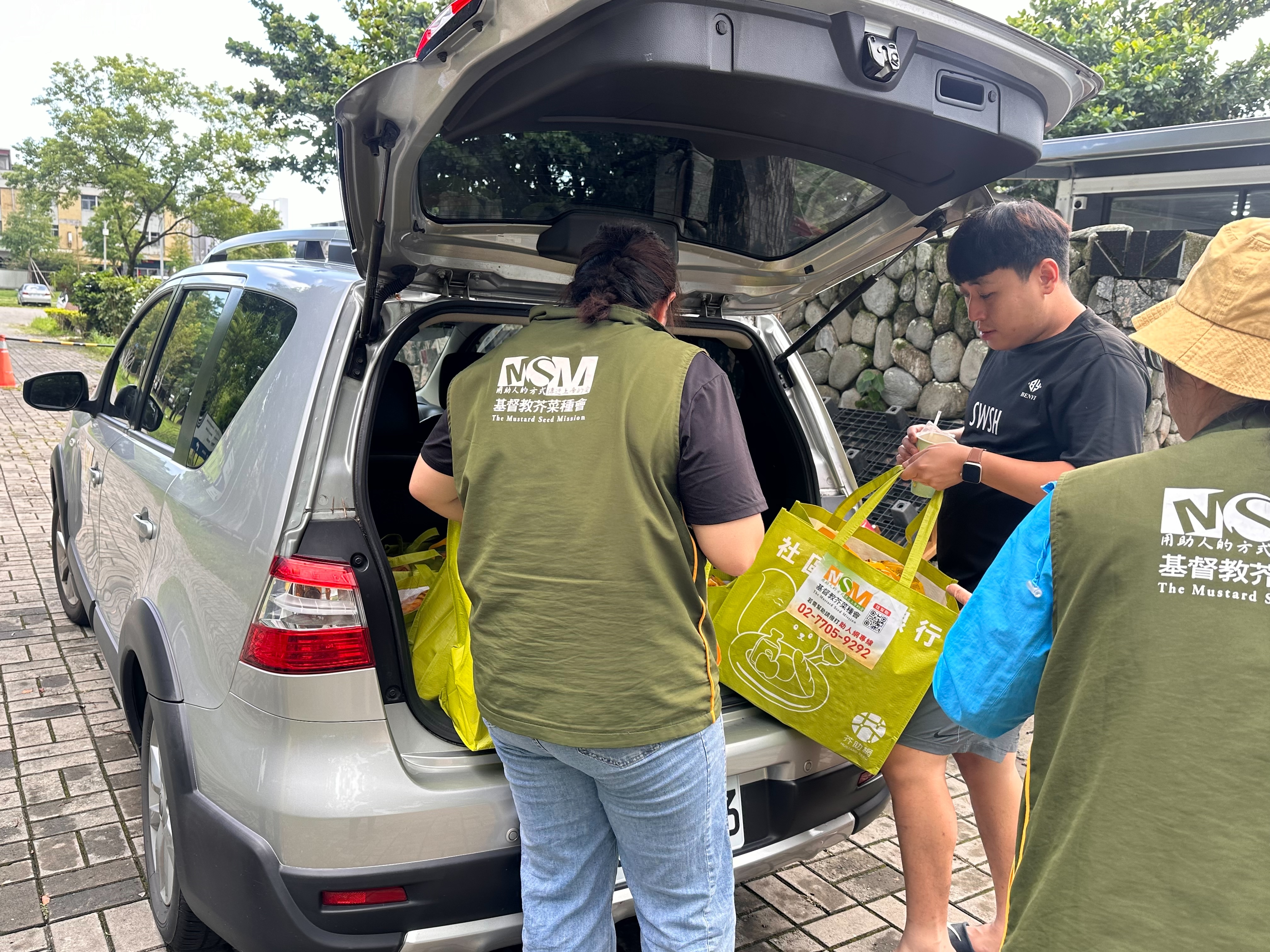 芥菜種會花蓮倉一早將物資搬運上車,兵分多路前往光復鄉各災區據點。
