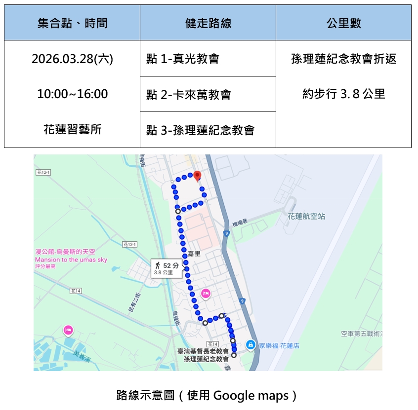 • 活動起點:芥菜種會花蓮習藝所(花蓮縣新城鄉北埔路13號)