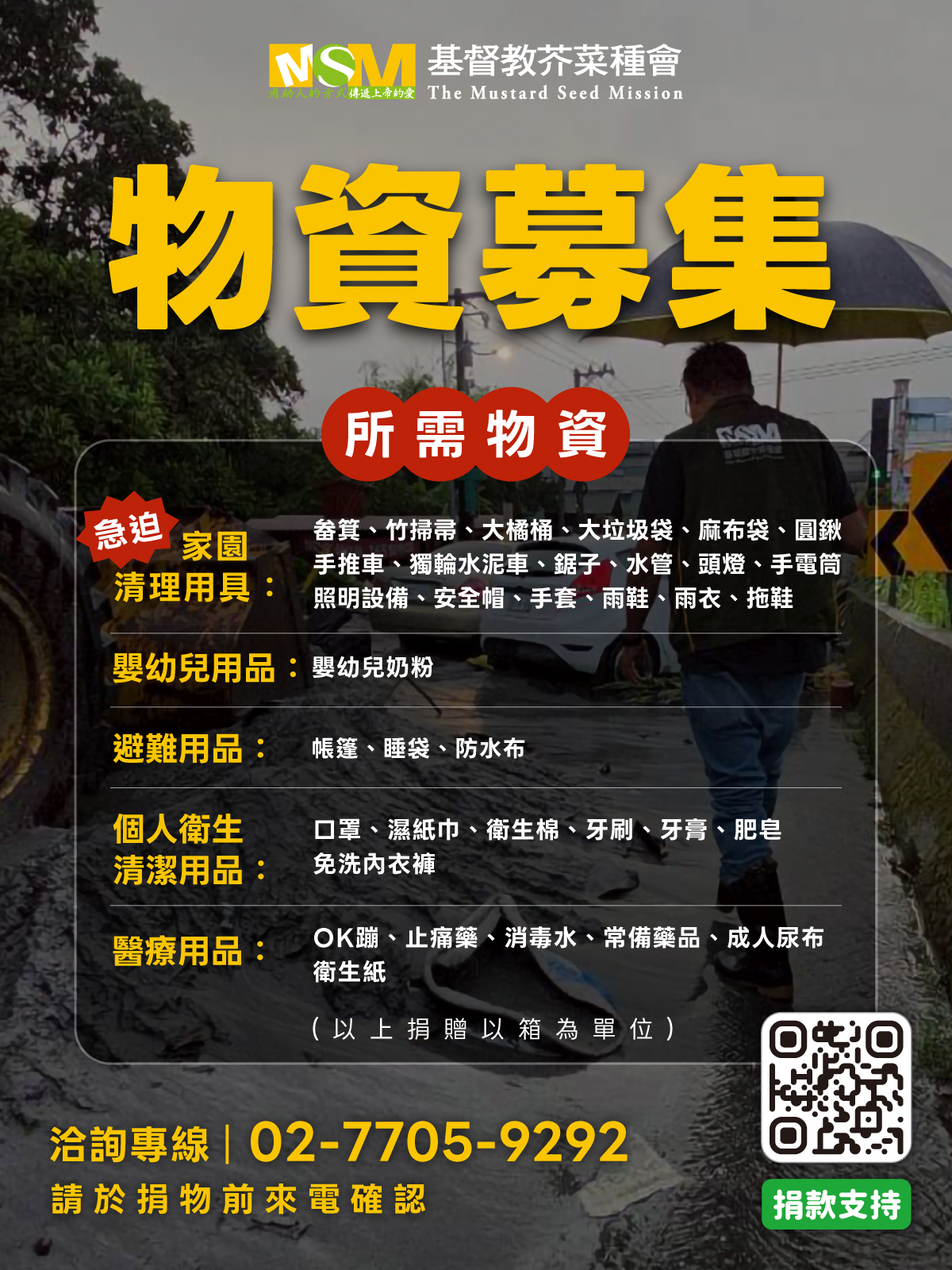 芥菜種會執行長李肇家表示,物資運送涵蓋芥菜種會各場域所製作的冷凍料理包和烘焙品,芥菜種會也將成立「兒少學習關懷站」,陪伴守護孩子的學習不間斷。芥菜種會感謝7-ELEVEN、全家便利商店及蝦皮購物等捐款平台的響應,以及社會大眾的善心支持,芥菜種會持續以助人的方式傳遞愛,邀請大家一起成為孩子與家庭的依靠,協助重建安全的家園。相關資訊請見官網,捐款專線 (02)7705-9292;若需要協助,請撥打助人網專線 0809-070-985。