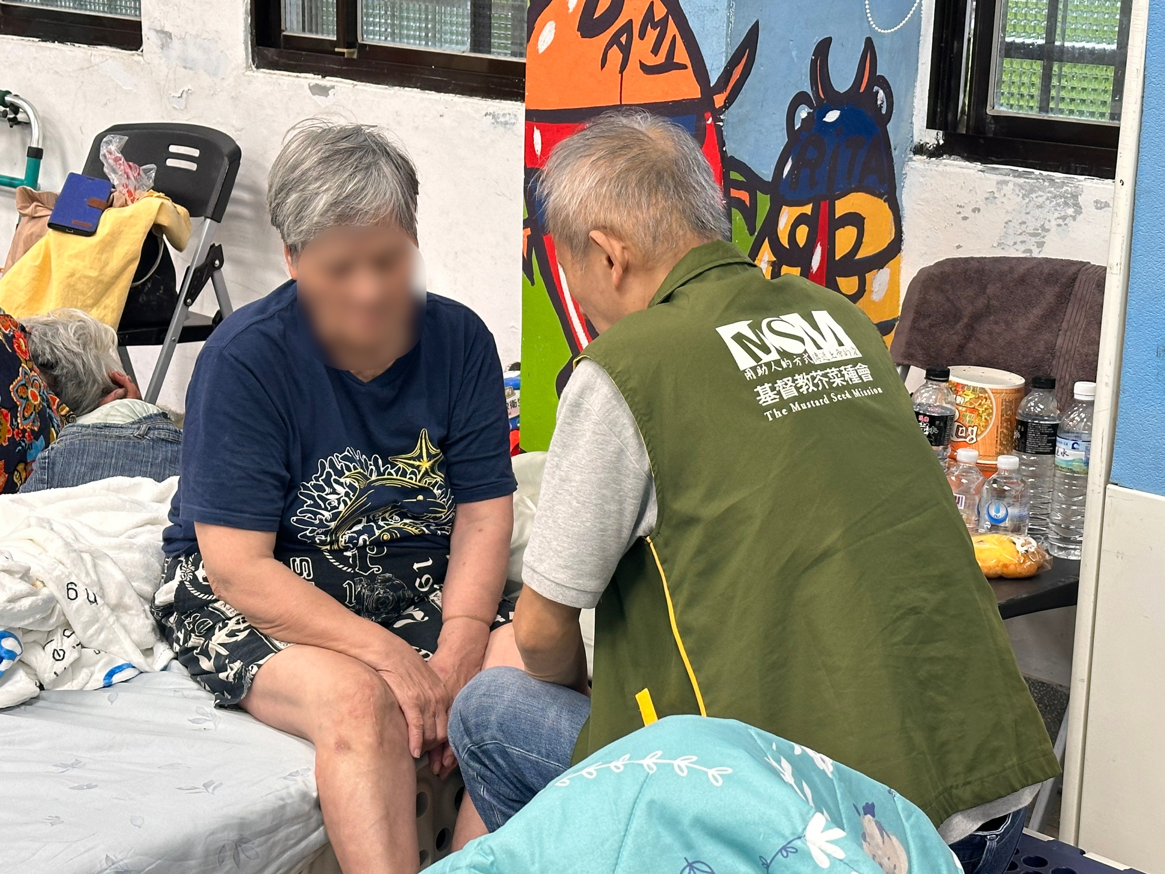 風災過後,認養童小勳第一時間請社工幫忙探望獨居在光復老家的阿嬤。社工在避難所找到她。阿嬤回憶當晚驚險:「我的心很慌,看到水一直漲,車子一台一台被沖走……什麼都沒了!」「水進到家裡比我還高!」洪水與泥流瞬間湧入,阿嬤雖曾因膝蓋手術行動不便,仍咬緊牙關艱難爬上二樓避難。在避難所內,芥菜種會的社工陪伴及為阿嬤禱告,安排祖孫視訊,讓小勳能安心就學。
