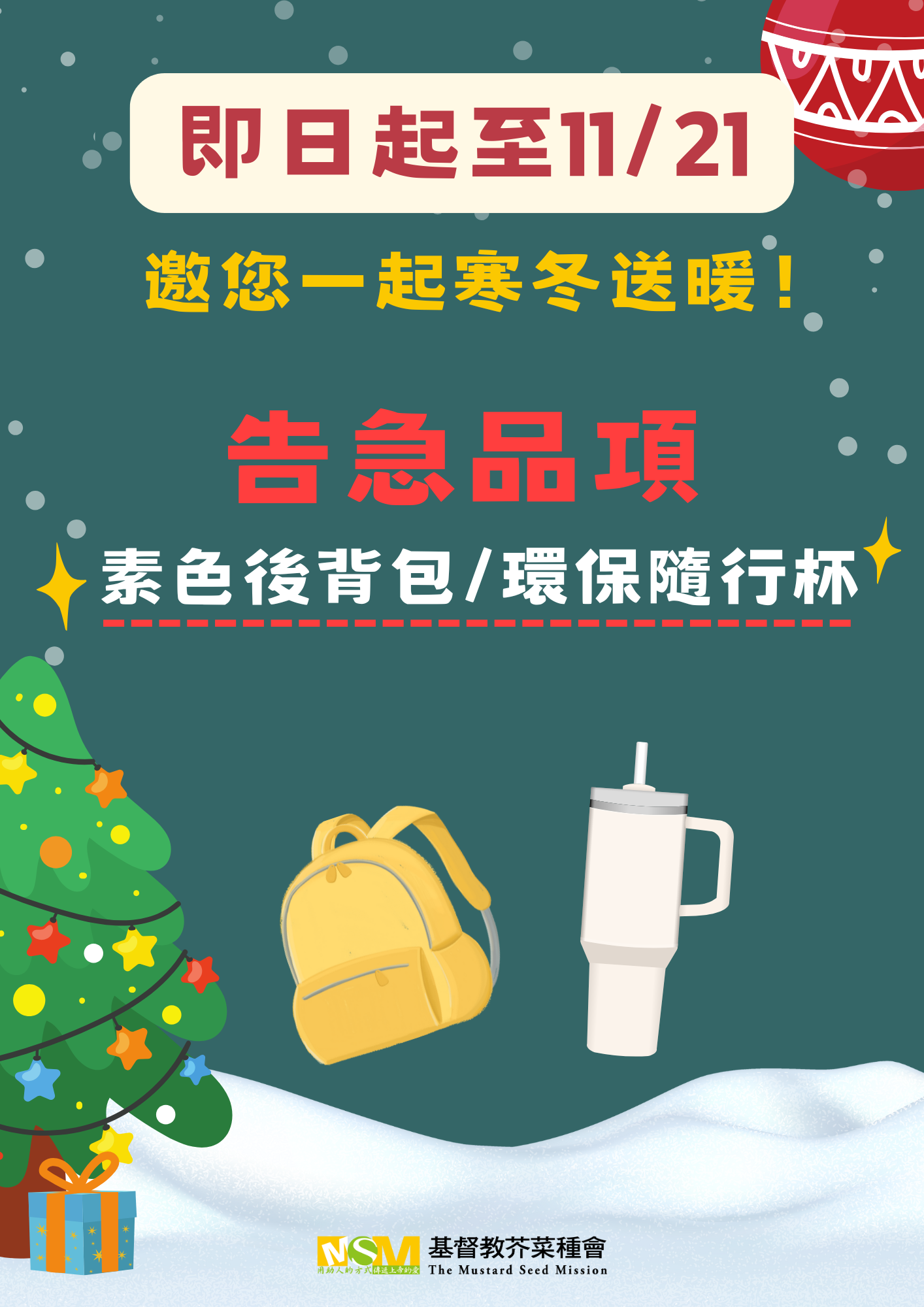 聖誕節的悄悄的到來,這是個溫馨、值得歡慶的時刻。然而,我們2025年的聖誕禮物募集活動即將進入倒數1個月,還有一些品項,像是後背包環保杯等,數量尚未達標,此外,其它禮物品項也急需您的愛心支持,幫助孩子們擁有一個充滿溫暖的聖誕節。