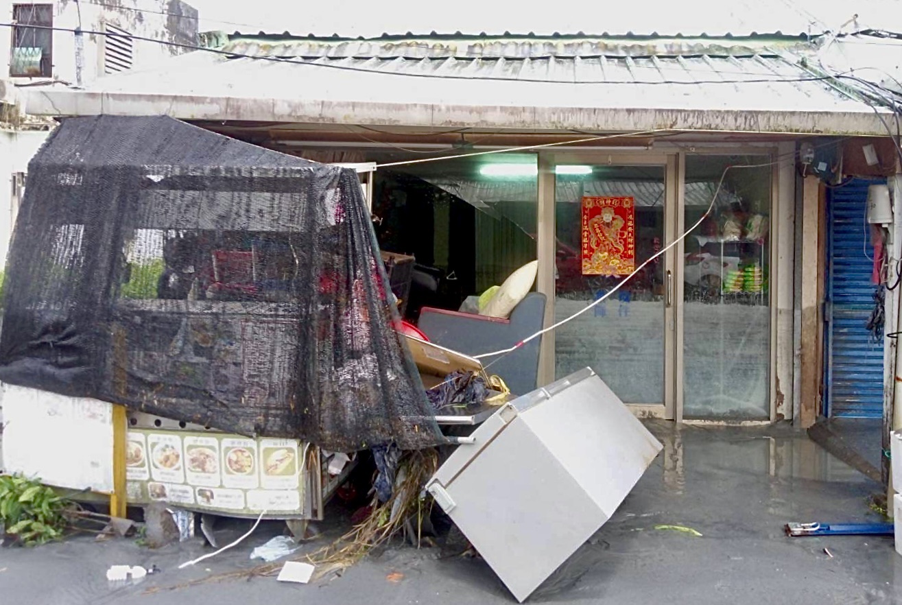 光復洪災後滿目瘡痍的小吃攤與住房