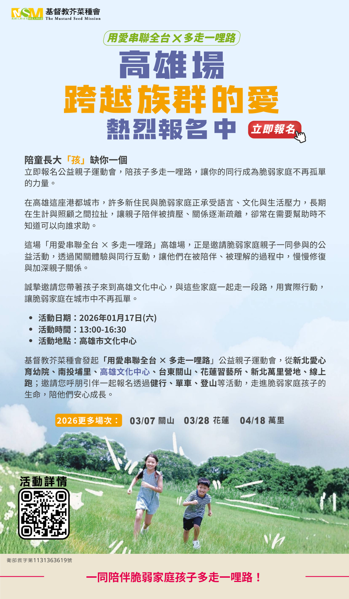 【用愛串聯全台x多走一哩路】高雄場-陪童長大「孩」缺你一個,趕快來報名