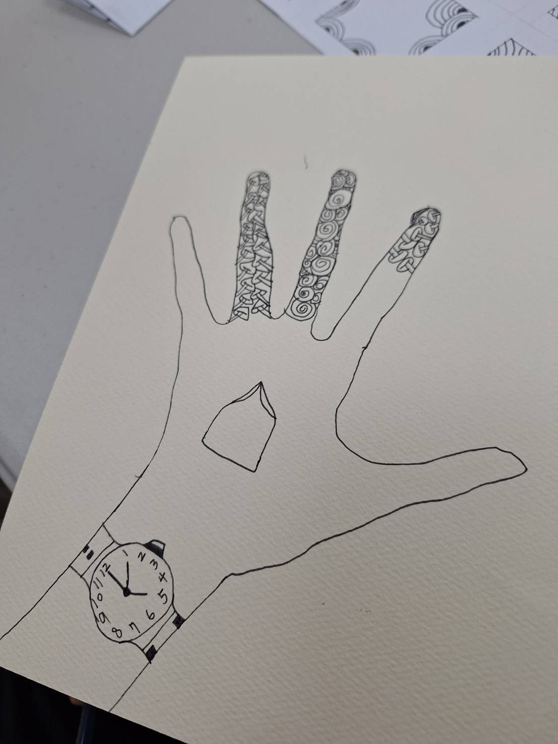 老師與她約定,先完成禪繞畫作品,再一起嘗試聯絡媽媽。於是,小甯格外認真地完成每一筆線條。只是,始終沒有得到媽媽的回應。小甯的臉上滿是失落,眼淚幾乎要掉下來。