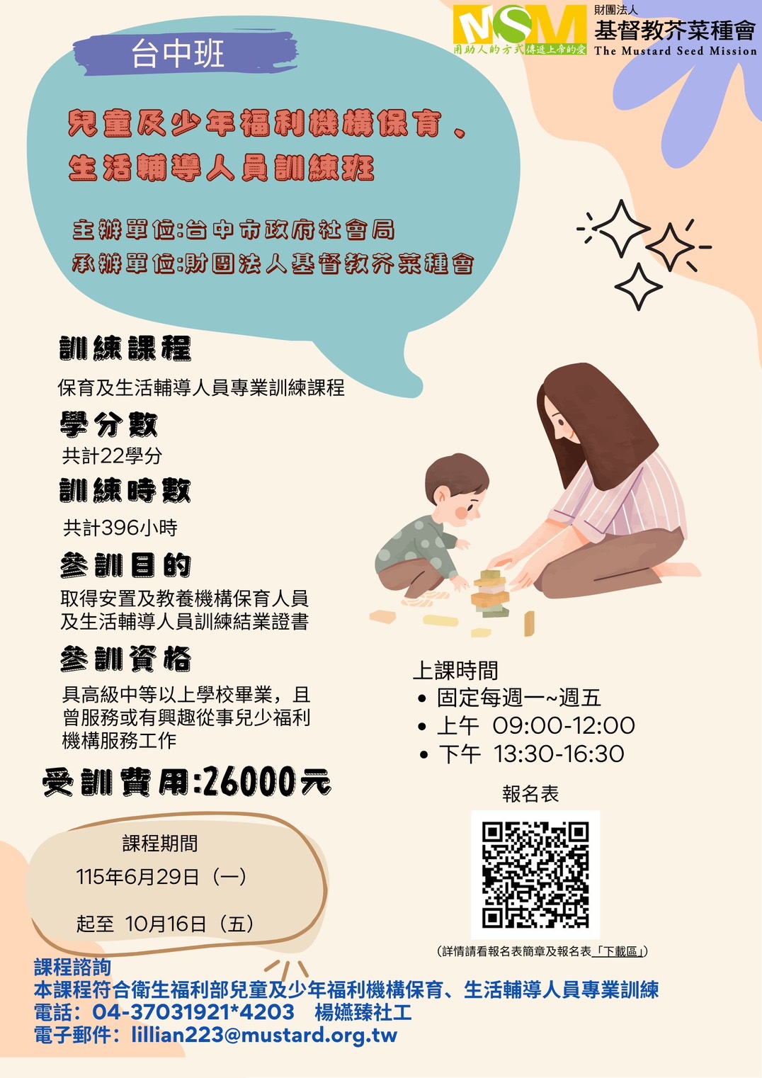 【兒少保育及生活輔導人員訓練班|台中班】
