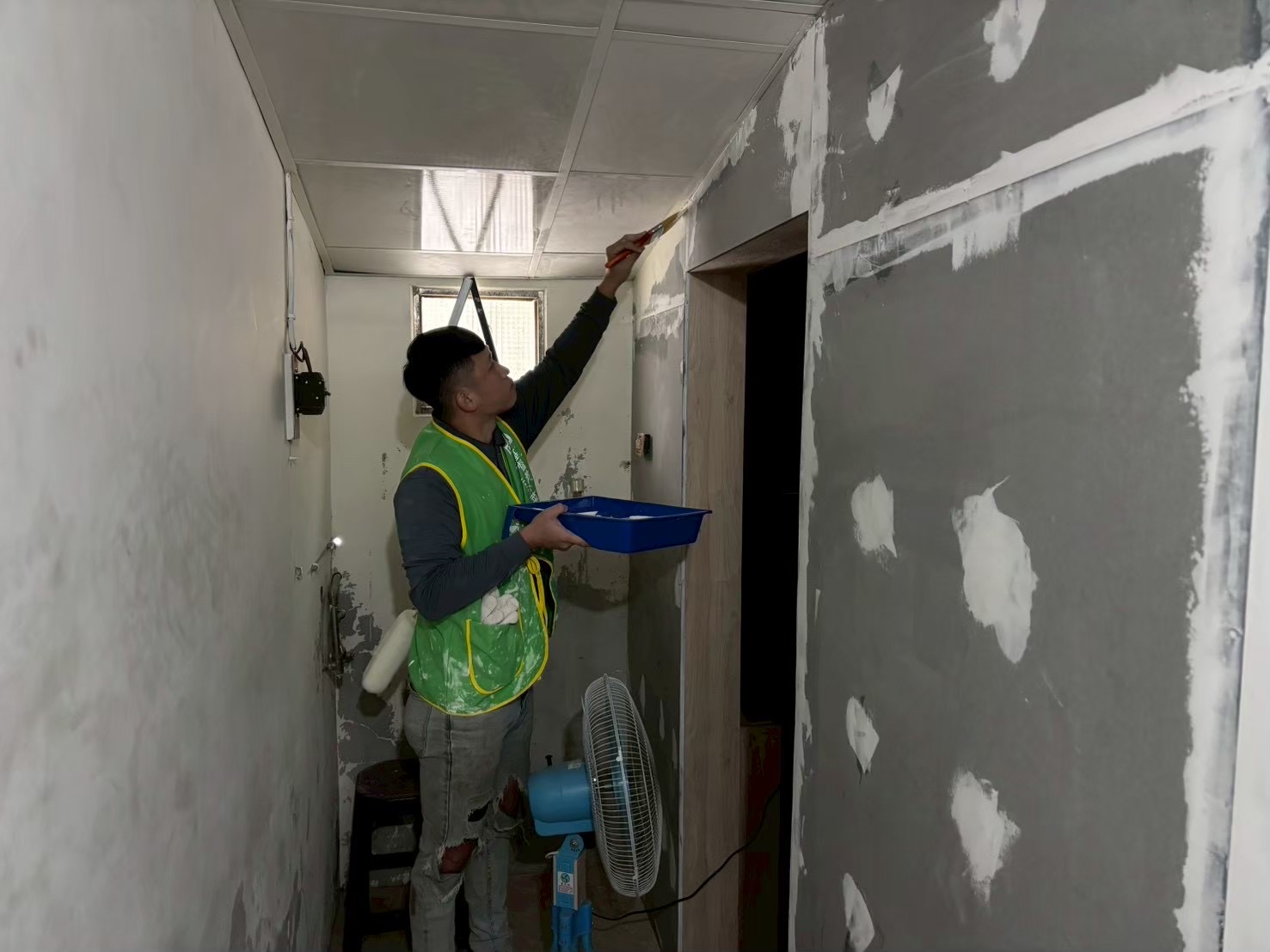 由於阿揚的大兒子是基督教芥菜種會關懷的認養童,社工了解其家庭困境後,邀請阿揚加入「以工帶振」油漆修繕計畫。對他而言,不只是待業期間的經濟支持,更是一份無價的「陪伴」,讓他不必在這艱難時刻與家人分隔兩地,且能在修復家園的同時,守護孩子的成長。