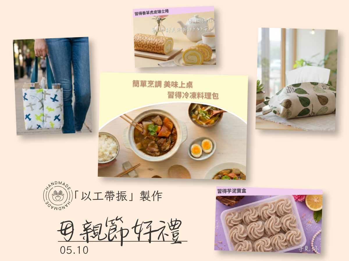 芥菜種會長期陪伴脆弱家庭,深知每一位媽媽和家庭照顧者的辛苦。今年母親節,特別為孩子預備「愛的禮物」,包含【習得蛋糕】、【編織小物】、【暖心熟食箱】,讓孩子有機會送上一份祝福給辛苦的照顧者,同時也幫助「以工帶振」的需要者,多一點收入,靠自己雙手重新站立、穩定生活。